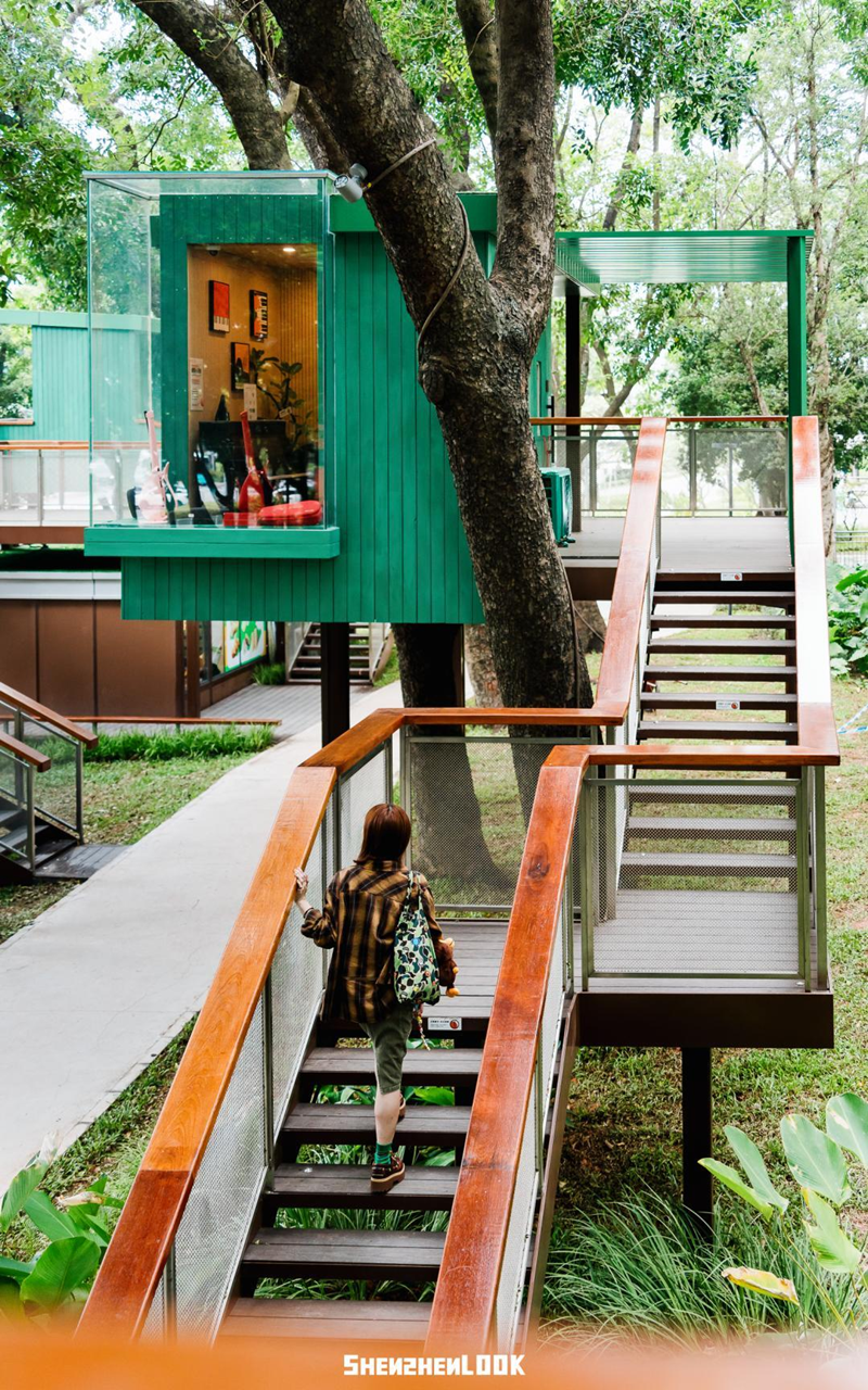 Ubicados en el Parque Corredor Verde de Shangbu, en el distrito de Futian, los dos llamativos estudios en casas del árbol, uno para guitarra y otro para baterías, se encuentran enclavados entre los árboles, lo que antes era un simple césped al borde de la carretera se ha transformado en un encantador parque en miniatura que invita a los transeúntes a detenerse y explorarlo.
