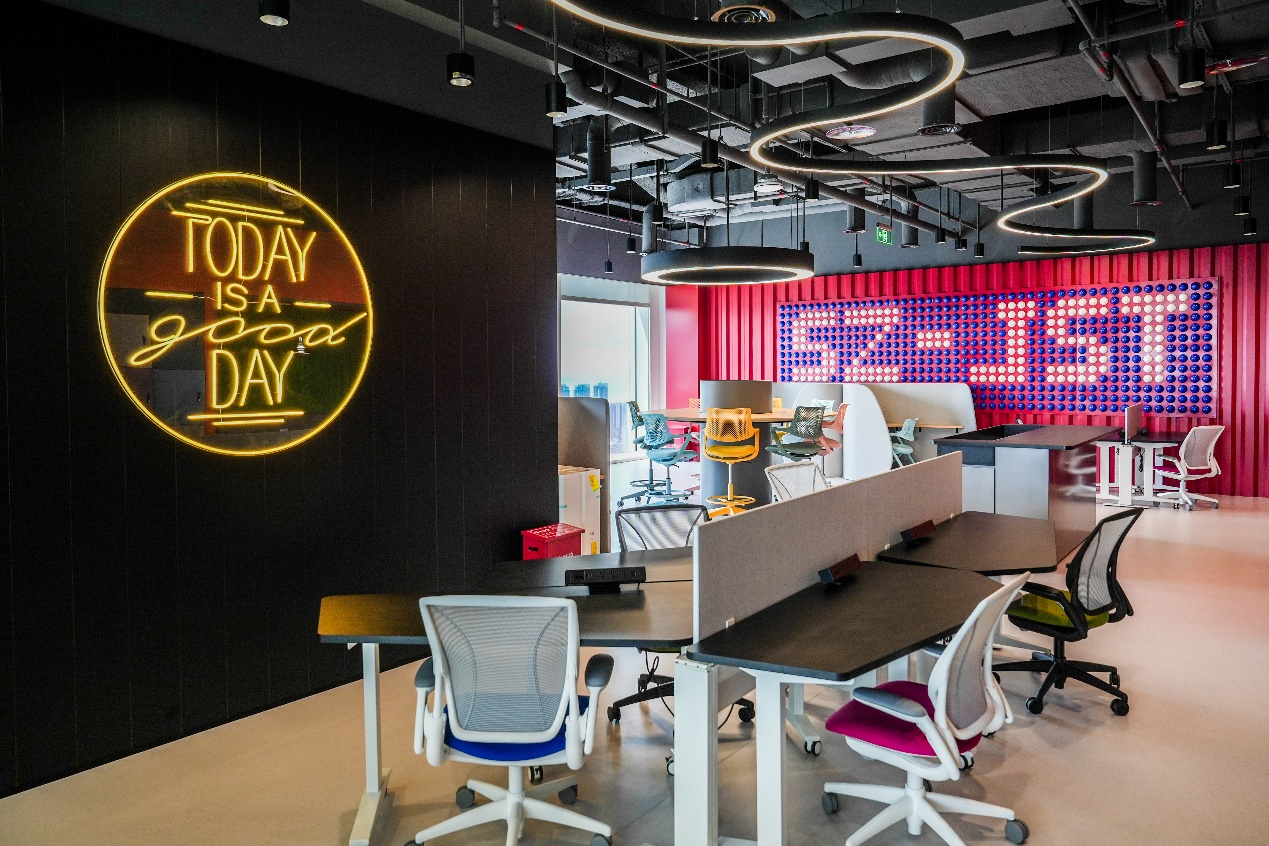 "Nos gusta seguir su propio estilo cultural o tener un gusto diferente a su cultura original", declaró. "Pero aquí en Asia, no es tan atractivo si introducimos el estilo japonés. Por eso, en Shenzhen, elegimos un estilo pop occidental". Añadió que espera que el diseño inspire a los empleados a fomentar la innovación.