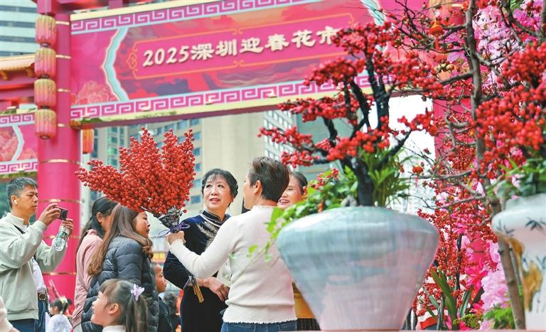 Los residentes compran flores en el Mercado de Flores del Año Nuevo Lunar 2025 en la calle Aiguo, distrito de Luohu. Xinhua