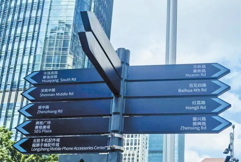 La Calle Peatonal Huaqiangbei, conocida como el mercado de electrónica más grande del mundo, ha actualizado su señalización para servir mejor a una clientela internacional en constante crecimiento, con señales bilingües ahora instaladas en cada intersección principal, según un informe de Shenzhen Special Zone Daily a principios de esta semana.