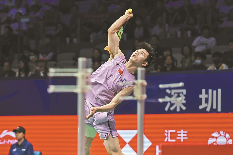Liu Yi de China, junto con Chen Boyang, juega en dobles masculino contra Kim Won-ho y Seo Seung-jae de Corea del Sur en el torneo de bádminton Li-Ning China Masters 2025, que se inauguró ayer en el Centro Deportivo de Shenzhen en el distrito de Futian.